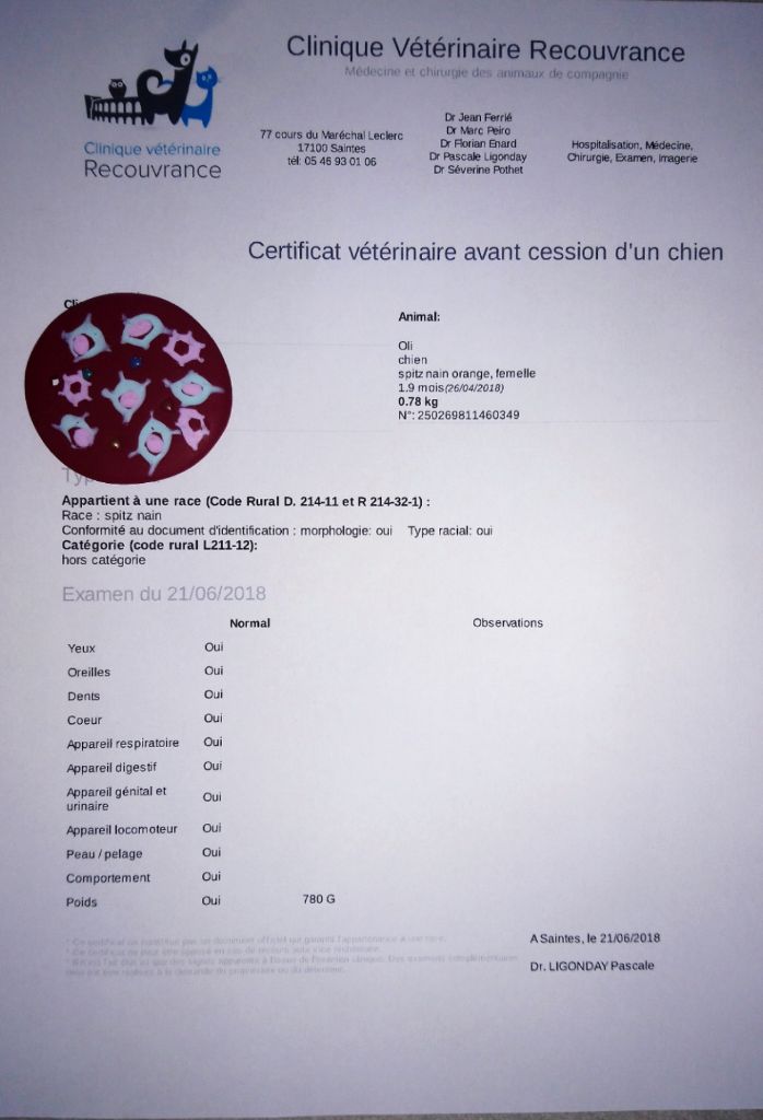 OLI est en parfaite santé elle est pucé primo vacciné certificat vétérinaire RaS.